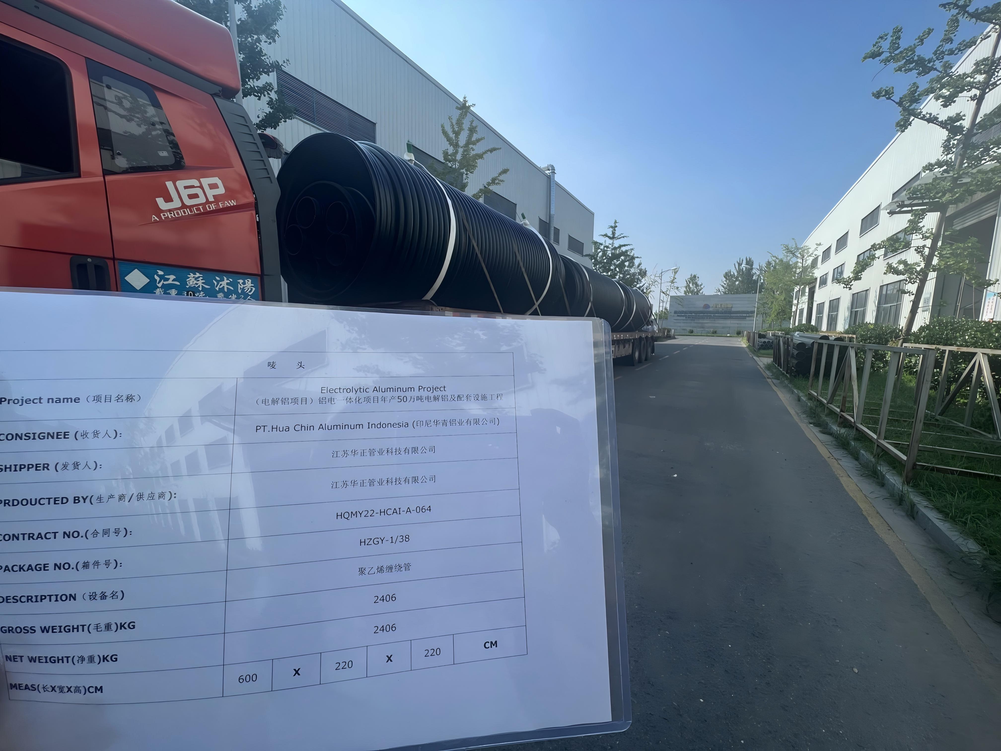 印尼华青铝业有限公司一体化项目年产50万吨电解铝及配套设施工程,该工程采用埋地用聚乙烯结构壁缠绕管(克拉管),DN300-DN2000口径作为该工程的排水管,由于该工程在国外施工且进度要求极为严格,所以对我公司生产能力是一次重大的挑战,对于安装技术层面的支持,我公司也是派专人飞往现场进行一次全面的技术交底。目前此项目已全部顺利安装施工结束,目前管道正常运行。